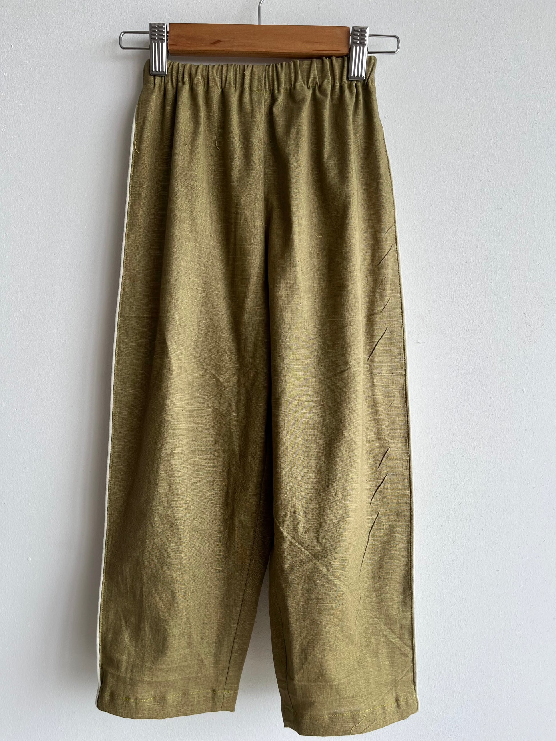 A comfortable and resilient trouser, dyed in a forest-green shade of Myrobalan and Indigo, this relaxed-fit pair, made from handspun and handwoven cotton, is both breathable and designed with an extra length to grow with your child.